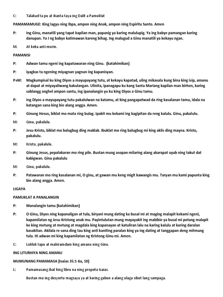 Anyang milabasan asan kaybat paro ngeni naman. Aldo ning Amanung Siswan - Pasibayu Kaybat ning Pabanwa. ING ORACIÓN Balang ka-6 ning abak 12 ning ugtu at 6 ning bengi V.